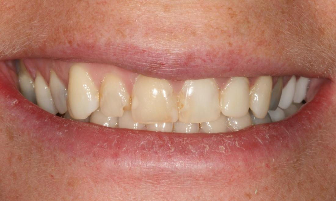 K.S. presented with concerns regarding the color and wearing of her teeth. She had older bonded fillings, and teeth were generally breaking down. We were able to restore her beautiful smile with a combination of crowns and veneers.
